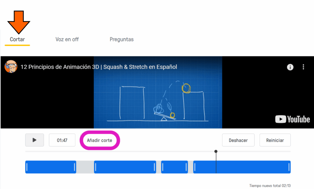 ✔️ Cortar: Permite recortar partes del video para enfocarlo en un único tema o habilidad.