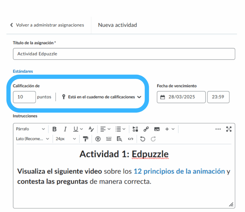 - Asigna puntos de calificación y vincula la actividad con el Centro de calificaciones para que las respuestas de los alumnos en Edpuzzle se registren automáticamente.