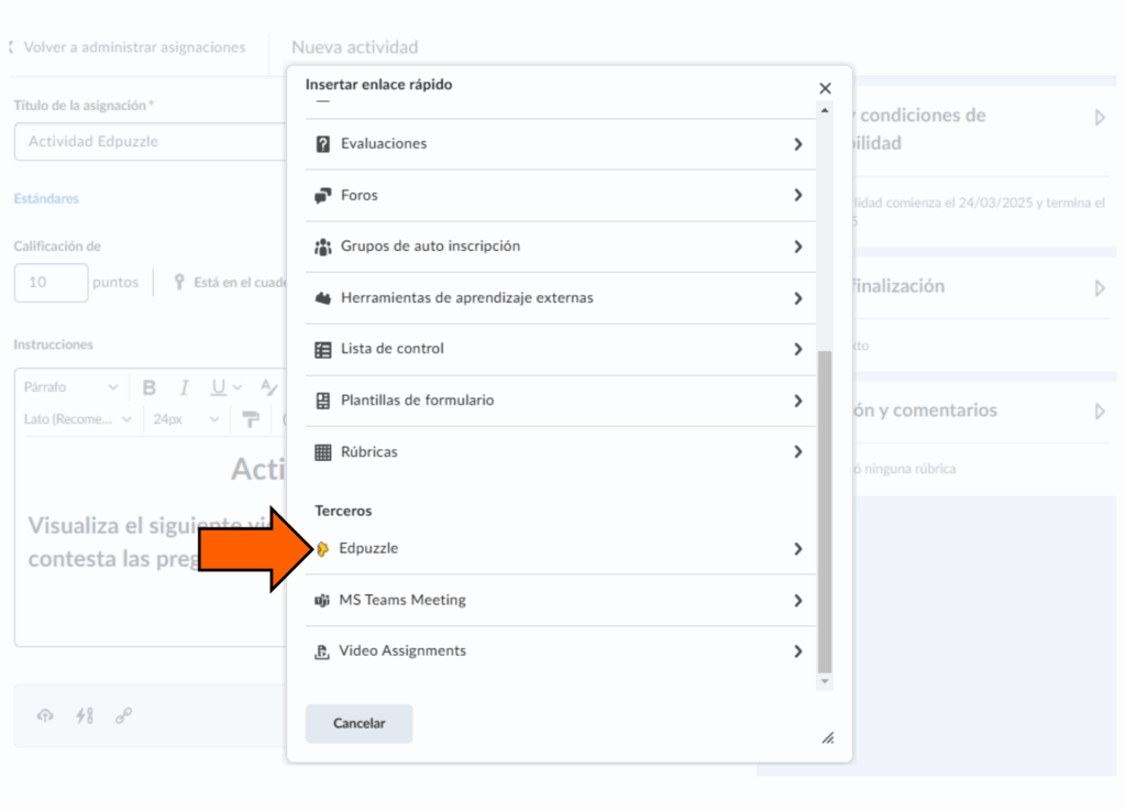 - En el menú emergente, desliza hasta abajo y selecciona la opción Edpuzzle.